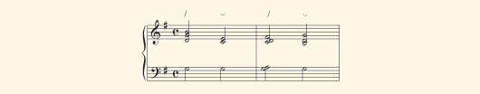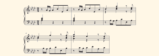 Track 05: The first 4 bars (plus a dyad) transposed down to F-major.