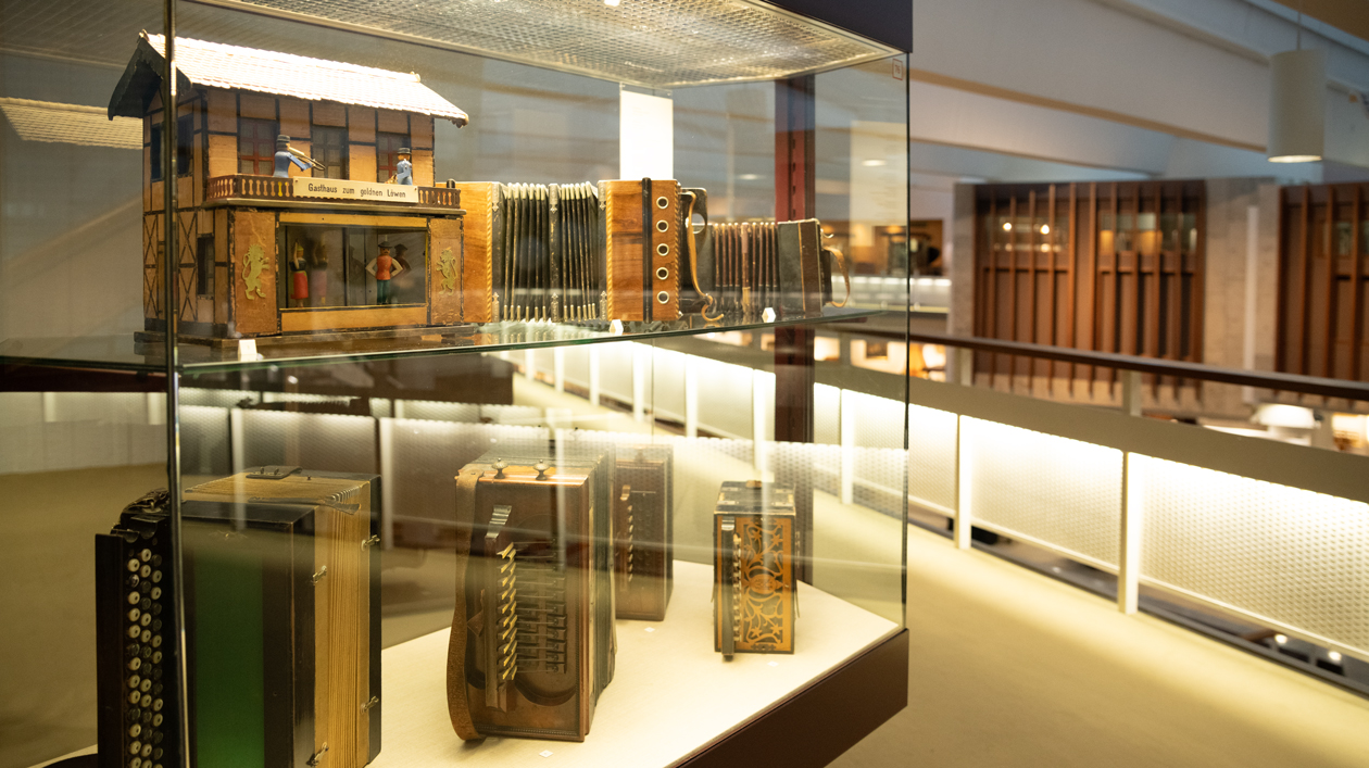 Anhand einer Auswahl von Akkordeons aus der Sammlung des Musikinstrumenten-Museums geben wir einen Einblick in die Geschichte des Instruments.