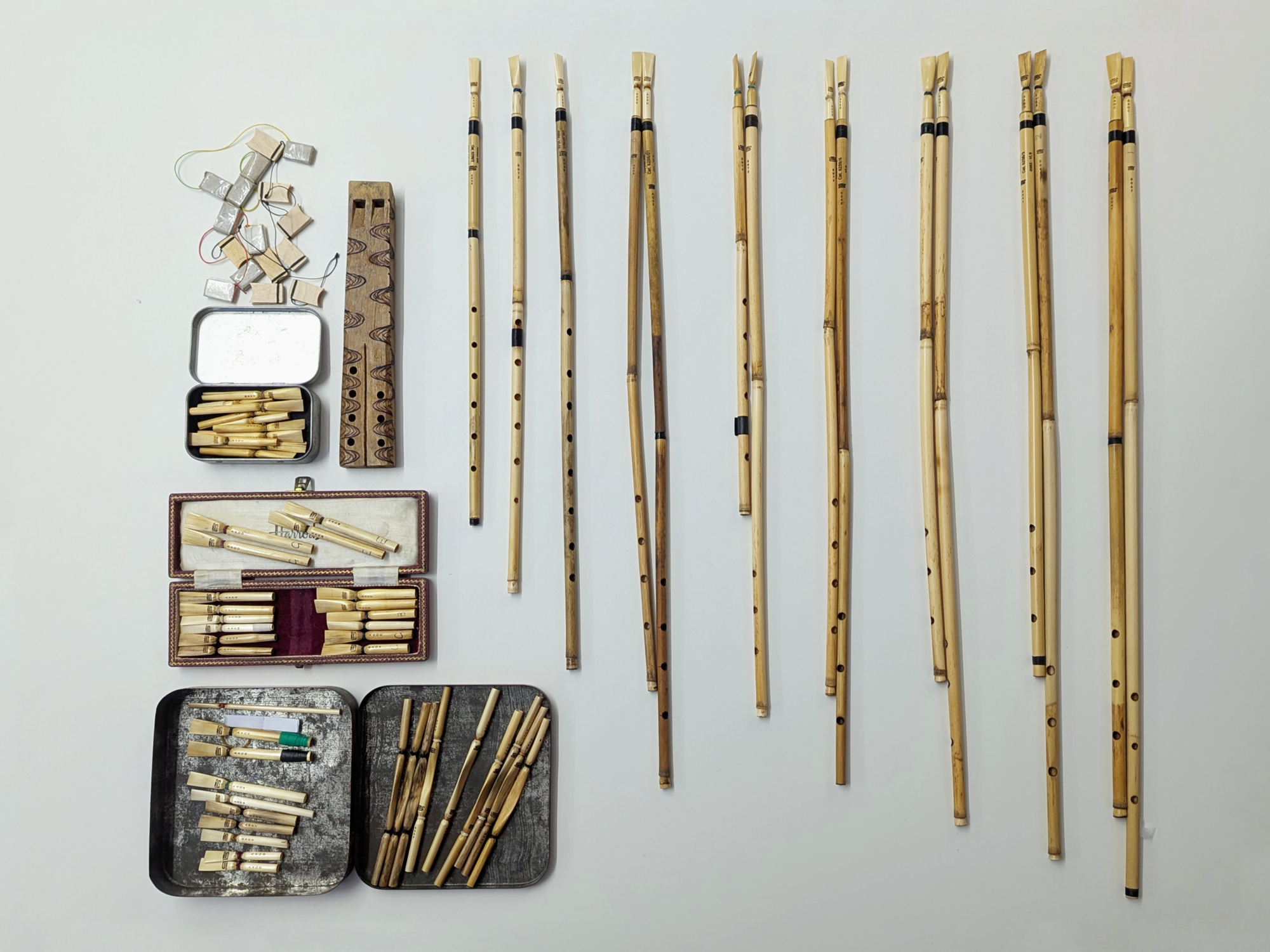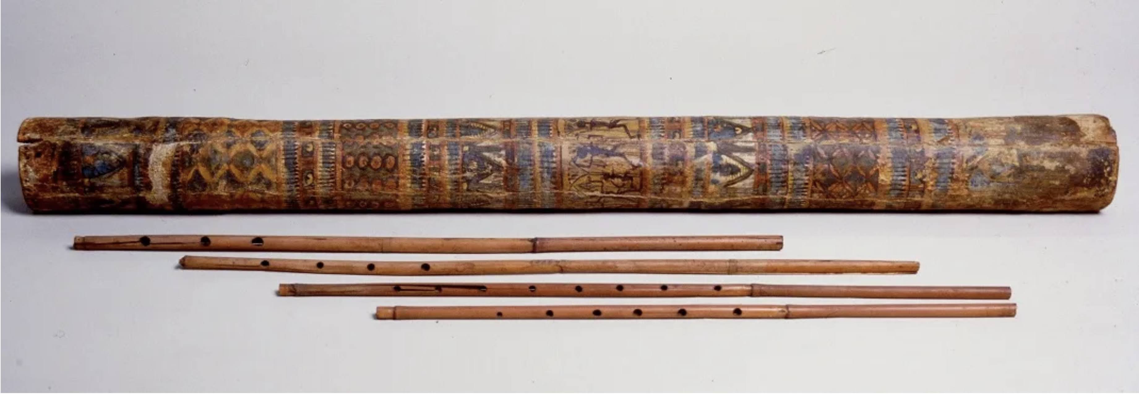 Das Foto am Anfang des Textes zeigt ein köcherförmiges Etui aus Holz und Leder und vier von zwölf erhaltenen Spielpfeifen der altägyptischen Doppelschalmeien aus Schilfrohr (wahrscheinlich Theben, XIX. Dynastie, ca. 1292-1189 v. Chr.; heute im Museo Egizio in Turin, Italien). Foto: Museo Egizio in Turin