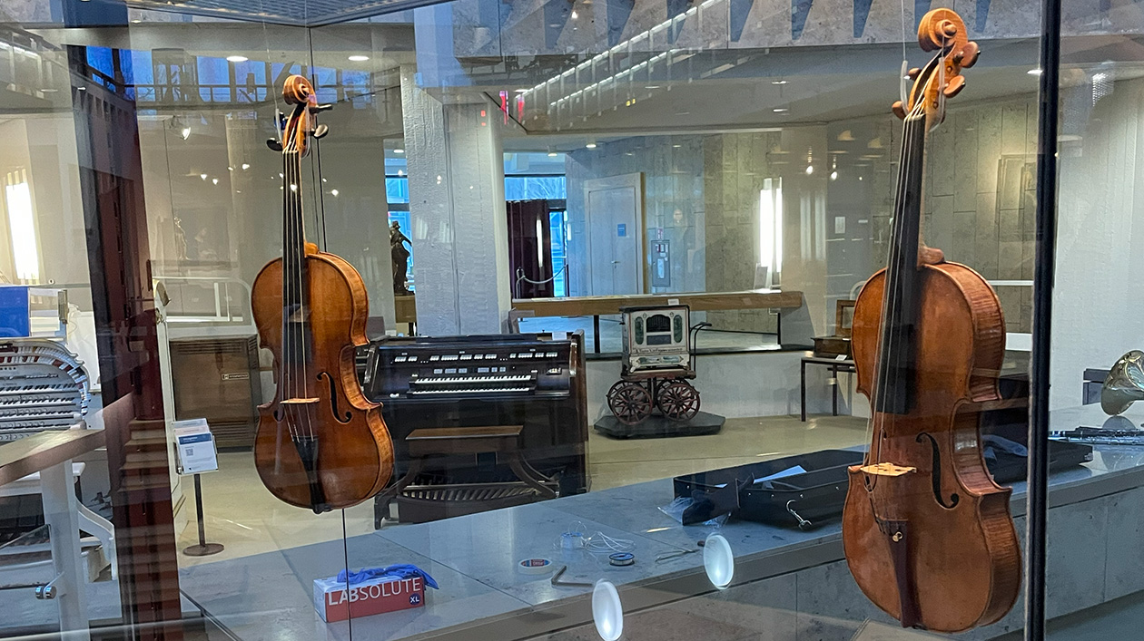 Anlässlich des Besuchs in Berlin war die „Golden Bell“-Stradivari des Museo del Violino für zwei Tage gemeinsam mit der Stradivari des MIM ausgestellt. Foto: Barnes Ziegler